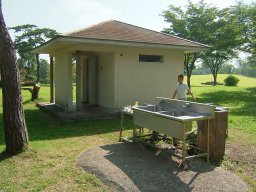 トイレと簡易炊事場、簡易炊事場は電気がないので、夜使うときは灯りが必要。