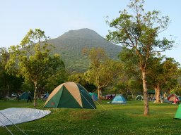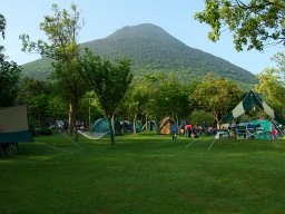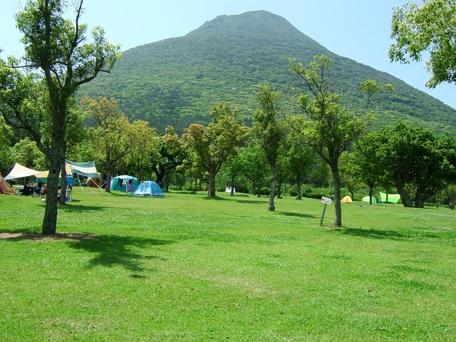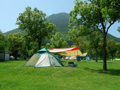 開聞岳の麓にあるキャンプ場「かいもん山麓ふれあい公園キャンプ場」。
