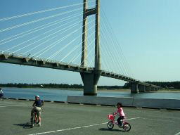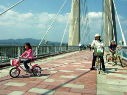 自転車と徒歩だけのためにかかった橋をわたって,美しいサイクリングロードが楽しめます。