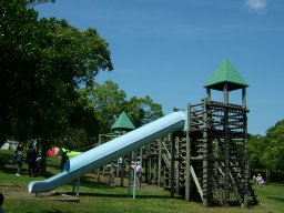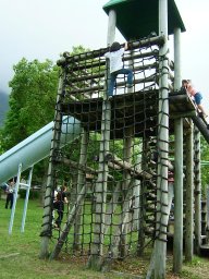 サイト下にアスレチックがあると,子ども達もちょっとした時間に楽しむことができる。
