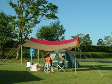 サイトはオートサイトが、低床、高床、芝生とあり、他にキャンピングカー用サイトもある。わが家はいつものように広々として一番安い芝生サイトにした。お盆の時期で人が多いことを想定していたが、混むこともなく、静かでゆっくりとした夜を過ごすことができた。夜になると思いの外涼しく、福岡や長崎よりも過ごしやすい。昨日までのあの暑さは何だったのかと思うほどだった。