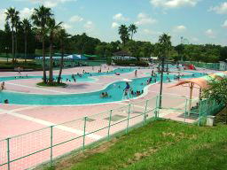 コンビネーション遊具とプール。