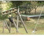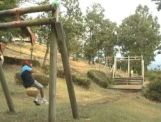 なかなか豪快なターザンロープ。1回目はみんな奇声をあげます。うちの息子は逆さになってます。(笑) |