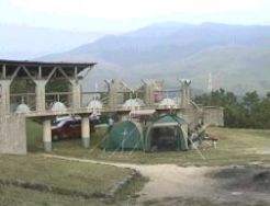 | 標高400mのキャンプ場。ガイドブックでは,とにかく眺めがよい場所にアスレチックがあるというイメージでしたが,眺めがよいサイトとアスレチックがあるサイトがあるという感じでした。頂上付近のステージ近くは大変山並みの眺めがよく,風の里というイメージにぴったりです。アスレチックはその下の斜面にあり,こちらは木立に囲まれているので,眺めの方は期待できません。でも,うちは子ども優先でアスレチック近くにしましたが,子ども連れにとっては正解でした。アスレチックに集まる子ども同士で仲良く遊び,初めてゆっくりした時間を過ごしたキャンプでした。(笑) この季節なのか,この場所なのか,キャンパーの方々はとてもマナーよく,あたたかい方々ばかりで,とてもよい連泊キャンプを過ごせました。 |