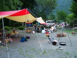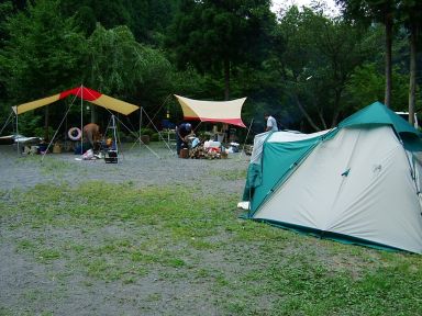 場内は広く,数家族でキャンプや団体でのキャンプができる。奥には草地のキャンプ場もある。場所によっては地面が固いので強いペグが必要。横を流れる川は小さな子どもから小学生まで遊びに夢中になる。 |