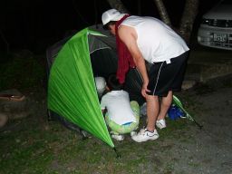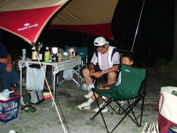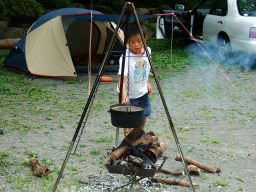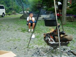 そして,民宿のおかみさん(といっても若いとても素敵な奥さんである。)の気遣いがとてもうれしい。風呂の番になるとわざわざ呼びに来てくれたり,炭を入れる缶を持ってきてくれたり。とても大勢のこのキャンプ場を一人できりもみしているのがすごい。こういう管理人さんがいると,キャンプ場をきれいに使わなきゃと思ってしまう。