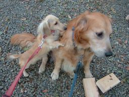 ジョン君とナナちゃんはとても仲良しだ。ナナちゃんが積極的にジョン君にスキンシップする。