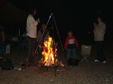 夜は焚き火を囲んで話が弾む。3時過ぎまで話が続いた。でも,なかなか眠る気にならない楽しい夜だった。薪を残すとジョン君のパパさんが持って帰るのが大変とがんばって薪を燃やし尽くした。最後の熾はきれいだったあ。