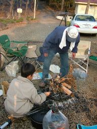 パパさんが集める木々を,息子とsonyちゃんと,なぜかこつしんさんがせっせとくべていた。(笑)