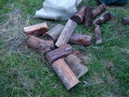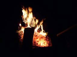 この大きな太い木が,いい香りと,いい音と,いい炎を演出してくれる。腕どうこうを言う前に,この蒔のよさが大事な要素となる。 |