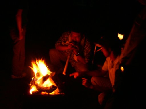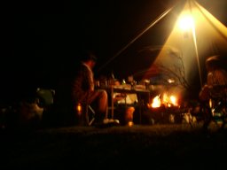 8時を過ぎ,田代原は闇に包まれた。焚き火とランタンの光の中,楽しい話が続く。
