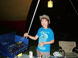 マミちゃんはというと,これまたかわいいお嬢さんである。おじさん達に肉や野菜を焼いてくれ,配ってくれる。そして,今日の焚き火のお世話はマミちゃんがしてくれた。パパさんと何度もキャンプをしていることもあって,手慣れている。師匠がいいからと師匠本人が言っていたが,本人のセンスですよとは誰も思っていても言わない。おじさん達のくだらぬおやじギャグにもつき合ってくれる,