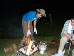 焚き火担当のマミちゃん。かいがいしく,蒔をくべる。