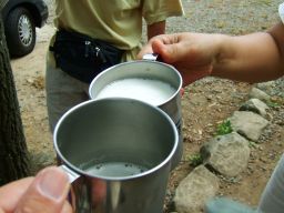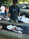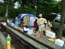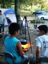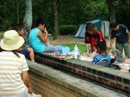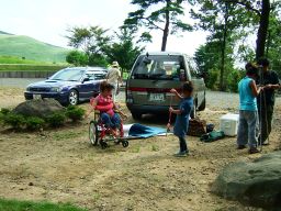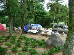 竜頭泉いこいの広場に着きますと,大分からぴかくん一家がもう到着していた。HPそのままの元気のよいぴかくんと優しい笑顔のくまんばちさん,そしてかわいいお子さん3人。風が吹き出す前に,テントの場所はどうしようと話していると,shiroさんが到着。で,ここまで揃って,私たち最初の仕事は何をしたかといいますと・・・・