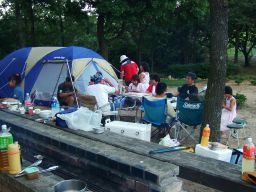 nagaomiさん一家に,ジョン君のパパさんも到着し,テント村が誕生する。nagomiさんちは,今日が初めての宿泊キャンプだ。少々の風にはびくともしないいいテントだった。でも,初キャンプがあの風では熟睡できなかったんじゃないかな。