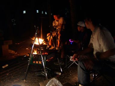 焚き火を囲んで,楽しい夜は続く。
