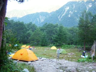 横尾まで降りて、最後のテント泊である。この一週間、夕方5時に食事を作り、6時までに食べ終え、まったりと寝支度をし、7時前の天気予報をラジオで聞き、うつらうつらと日暮れと共に眠りにつき、朝5時に起床して、6時半に歩き出すというパターンが確立した。一週間の山生活に思いを馳せ、梓川の沢音が心地よい最後のテントの夜を過ごした。