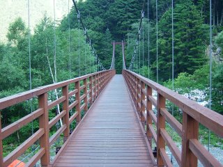 朝の横尾橋を渡り、涸沢に向かう。