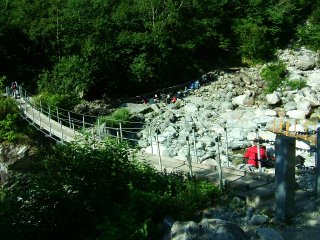 本谷橋に着く。涼しい場所でたくさんの人が休憩している。