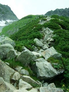 最初の取り付きを過ぎると、あとは石がごろごろとした登山道になる。
