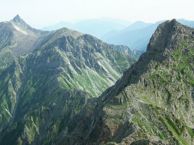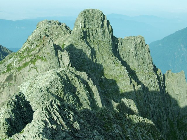 日本8位の高峰の名に恥じない厳しい岩の芸術を見せてくれる涸沢岳である。