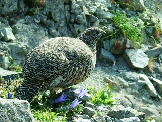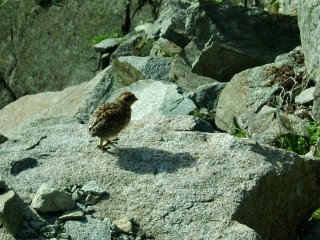 穂高岳山荘に戻る途中で、雷鳥の親子と出会う。