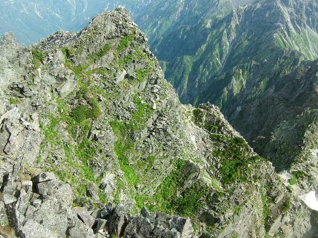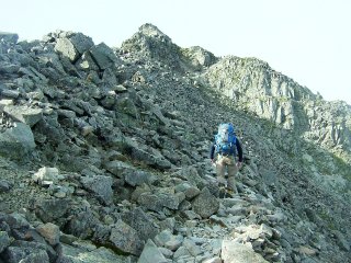 槍ヶ岳から北穂高岳に向かう厳しい縦走路。