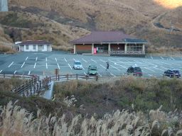 細い尾根道を経て,火口東駅から仙酔峡駐車場へ。この道は急坂の舗装路だった。