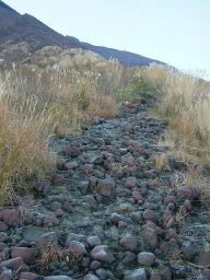 仙酔峡駐車場から,石ごろごろの道を歩き始める。