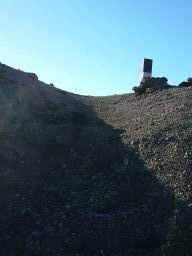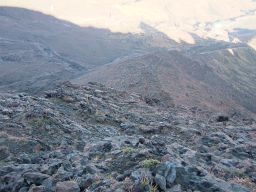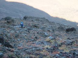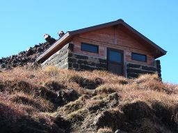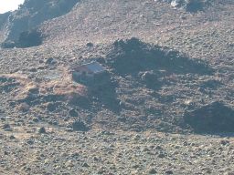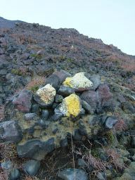 その後,高岳山頂を経て,月見小屋まで行く。月見小屋のある窪地を歩くと,ほんとうに月の上を歩いているうようだ。石ごろごろの荒涼とした世界。なんともいい。