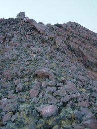 噴煙をあげる火口壁が見えてきた。