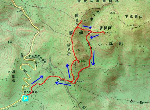 池の原園地駐車場〜仁田峠駐車場〜妙見岳〜国見岳〜普賢岳〜