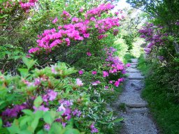 振り返り,振り返り,花の道を通って,妙見岳に向かう。