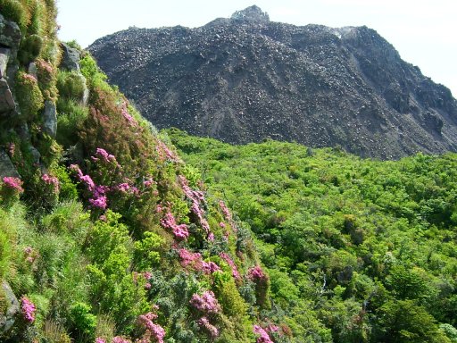 普賢岳山頂より,平成新山とミヤマキリシマ。