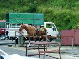 売店のおばちゃんが到着し,準備を始めた。ひき馬の「さぶちゃん」がトラックから降り,準備を始める。下からバイクが上がってきた。そういえば,お盆だ。これからたくさんの人が来るんだろうなあ。