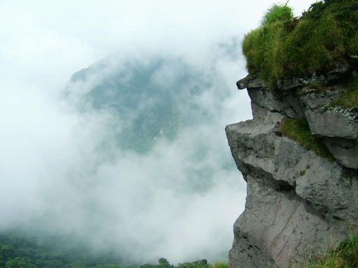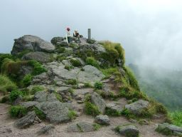 紅葉茶屋に着くと,薊谷方面から来た人たちで出会う。ガスがかかっているが,普賢岳を目指す。山頂には,2人の方がおられた。びっしょりのシャツを風に当てる。風は心地よく体を冷やしてくれた。平成新山はガスのまかれてなかなか姿を見せなかった。そのうち,数人の方が頂上に到着した。若い男女3人組が,頂上に着いてうれしそうに会話している。うれしそうなその姿はこちらもうれしくなる。だって,長崎県で一番高い山だもの。