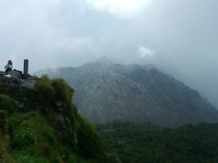 普賢岳山頂,平成新山はなかなか姿を見せてくれない。