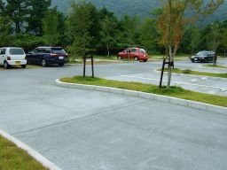 池の原園地に車を停める。去年の冬に来たときは,工事中だったが,きれいに駐車場が完成している。オートキャンプ場の区画サイトみたいだ。