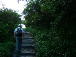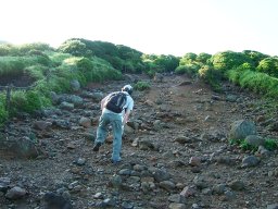 牧の戸を6時に出発。最初の舗装してある登り坂にかかる。案の定,はりきっているヒロ坊のペースは速い。