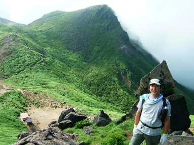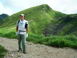 福岡市に友人がいる。幼稚園の頃から知っている竹馬の友「ヒロ坊」である。今年になって自宅に泊まりに来たときから,一緒に登ろうと半分冗談で話していたが,結構その気で,今回実現することとなった。実は「ヒロ坊」大学時代,ワンダーフォーゲル部である。ただ,半年しか在籍していなかったという事実はあるが・・・ 雲仙や宝満山に登っていたらしい。「腐っても鯛」という言葉があるが,「腐ってもワンゲル」。その心意気を見せてもらおう。久住は登ったことがないらしいので,夏の青々とした美しい久住を見せてあげたく久住山を選んだ。