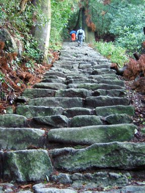 舗装路を少し歩き,石段の道を登り始める。