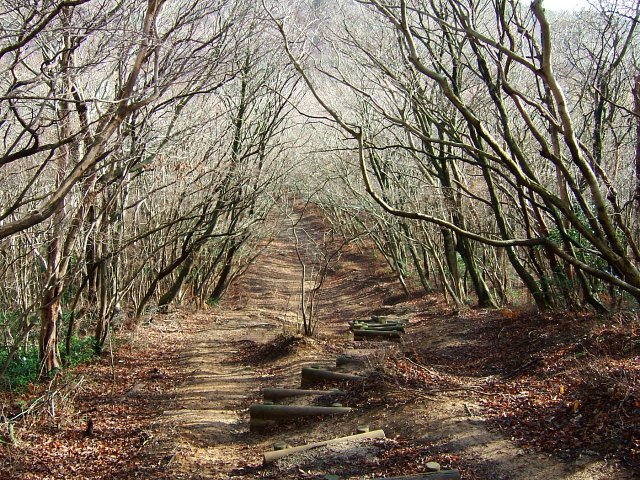 レーダーのある三郡山を経て,砥石山に向かう。砥石の前は多少の登りがある。前砥石でちょっと早めの昼食とする。砥石山からの道も小さな登り下りを繰り返しながら,進む。冬木立の様が何ともよい。