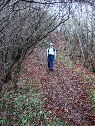 宝満山を過ぎ,三郡山へ向かう。冬枯れがとても心地よく,美しい道だ。ゆるかやな道は,数人で話ながら歩くのにとても心地よい。歩く道の土質も濡れていてもつるつると滑ることなく歩きやすかった。肉まんさんとhirokoさんの楽しい話がたくさん出てくる。食べ物を出したり,休憩の場所を選定したり,いろいろな解説も加えた肉まんさんのありがたい心遣いの中,楽しく歩かせていただく。話題にことかかないhirokoさんからは,楽しい話のてんこ盛り。そんなうきうきとした気持ちにさせてくれる心地よい縦走路だ。