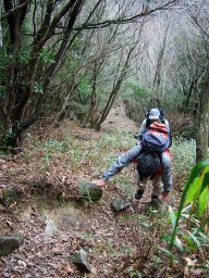 若杉の鼻で眺めを楽しんでいると,上から青年が駆けおりてきた。
