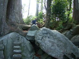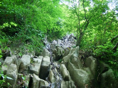 笈吊峠から,笈吊岩へ。その昔山伏が,荷物を置いて登るしかなかったという岩場だ。今は,しっかり鎖がある。ちょっと滑りやすい岩を身長に登る。思った程ではないが,油断大敵の岩だった。