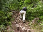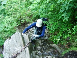 | 笈吊岩に到着。3点確保で慎重に。 |
