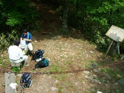 山頂は何名もの方が休んでいらっしゃった。ふう〜と息をつきベンチに座る。きつかったねぇと声を掛け合いながら,昼食。さっき,追い抜いてきた方が頂上に着き,話しかけてこられた。