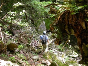 犬ヶ岳登山口〜45分〜経読林道〜30分〜笈吊岩〜30分〜犬ヶ岳〜30分〜一ノ岳〜40分〜杉の宿跡〜30分〜虎の宿跡〜40分〜求菩提山〜15分〜上の駐車場
