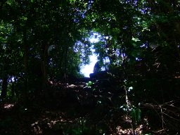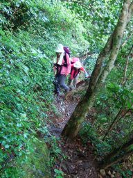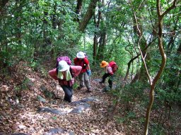 岩屋神社を越え,話をしながら歩く。しかし,今日は暑い,暑い。何度も休憩し,何度も水分を採りながら歩く。途中の休憩でたばこを吸うと,いろいろなつっこみが始まった。でも,これは職場で慣れている。小さい頃,親戚のお姉ちゃん3人に囲まれて育った私は,こんなお姉さま方のつっこみがある意味心地よい。んっ,そう言えば,年齢構成も,人数もその頃と似ているような・・・