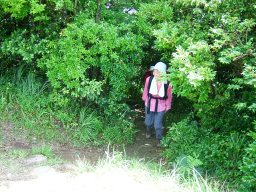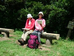 元気のいい声だ。すると,3人の元気なお姉さん達が歩いてこられた。ここまで,1時間歩いてきておられ,もう,汗びっしょりだ。うーん。全然初対面の気がしない。(笑) かりんさんは声と一緒で元気な方だ。そよ風さんは,ホームページの雰囲気そのままのやわらかいけど,元気な人。そよ風さんのお友達のYさんもそよ風さんのホームページの写真でちょくちょく拝見しており,これまた初めて会った気がしない。